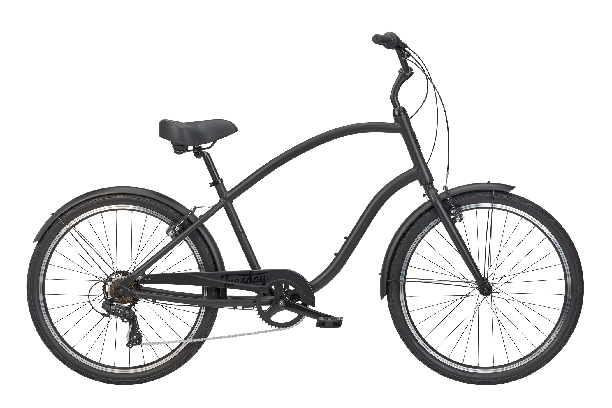 The March 7 offers a range of speeds to tackle neighborhood hills and flats. It features Tuesday's custom Touch Down geometry that lets you put your feet on the ground while still in the saddle for ultimate confidence and its upright riding position, comfort saddle, and smooth-rolling 26-inch tires make this one comfortable ride. The color-coordinating fenders and chain guard keep you and your bike looking good.